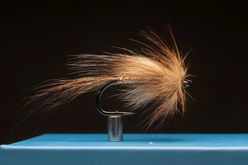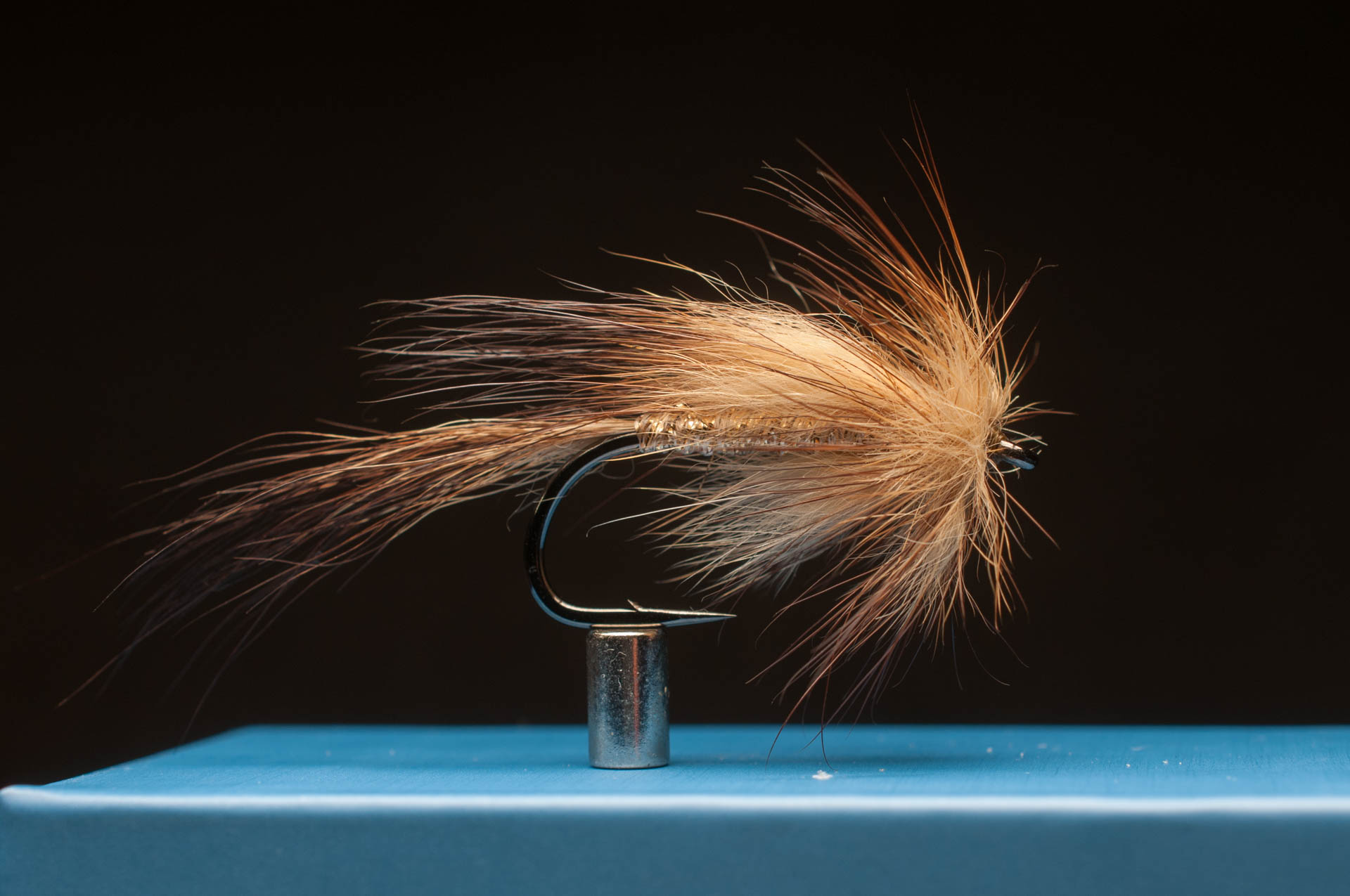 A lot of hair! I don't remember exactly what I used, but it can be fox or muskrat. Hair tail, hair wing, hair false hackle and hair hackle - all made from the same piece of pelt.